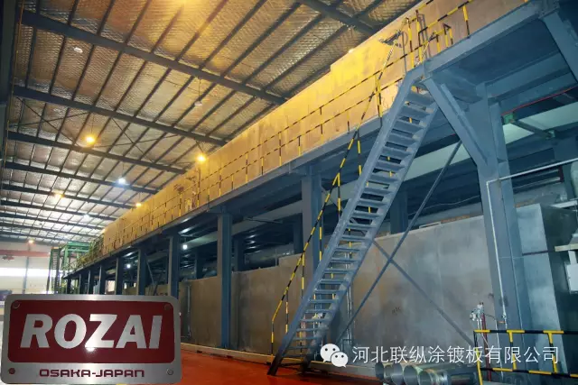我公司依托于日本MS-中外炉株式会社精工打造生产设备,在生产线上对金属卷板进行以恒定速度对钢板进行恒温、恒浓度的碱液喷淋和碱液刷洗,保证卷板表面干净清洁无任何残留物后,原材料正表面和背表面均匀的分别涂一层液态涂层,涂层的厚度均匀度一致、表面光整。然后经过近500℃的高温固化后,形成玻璃化温度达到充分的化学交联聚合反应,使产品达到设计技术要求。