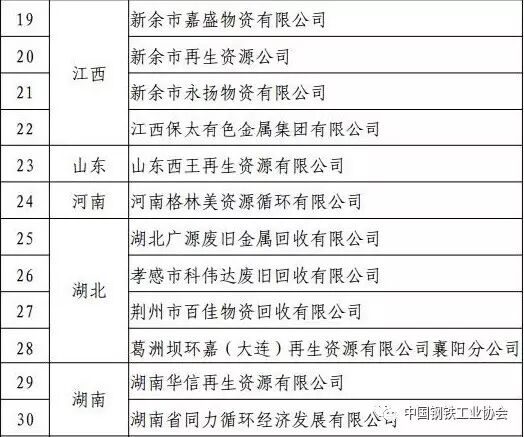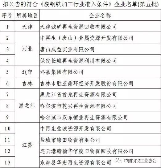 工信部:《废钢铁加工行业准入条件》企业名单(第五批)公示: