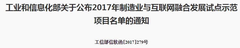 2017年制造业与互联网融合发展试点示范项目完整名单如下:
