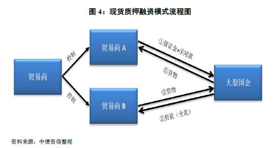 1、贸易商拥有独立子公司A与B(一般为三级或四级子公司),若B公司拥有货权,则由A公司向国企C支付保证金以委托采购货物;