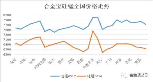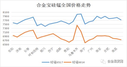临近月底,合金厂家以交付钢厂订单为主,市场现货供应紧张使得市场盼涨心态增强。一方面,6月钢招正在陆续进行,市场盼望能够借钢招来提振硅锰现货市场价格;另一方面,上游锰矿价格挺涨,对硅锰现货成本以有力的支撑。不过有业内人士持不同看法,从目前已公布的6月钢招情况看,低于市场预期,市场利空因素仍较强。虽然代表性钢厂还没有公布6月钢招的详细情况,但有市场人士分析,钢招情况较上月变化不大或略有下滑。对于上游锰矿情况,虽然锰矿商挺价意愿强烈,但下游合金厂家到港补货量不及预期,港口锰矿价格高位压力明显。综合来看,对于后期硅锰现货价格走势,有几点需要格外关注:一是期货走势。目前,硅锰现货价格上涨遇到瓶颈,市场急需一针“兴奋剂”来动现货价格走高。期货或可以成为这一剂猛药。今日期货价格攀高,这对于随后的现货市场有一定的带动作用。如果未来几日这一强劲势头能够保持,不排除后市出现期现二市共振的局面,届时,硅锰现货价格或出现一波拉涨;二是6月代表性钢厂的招标情况;三是市场的硅锰现货库存。可以肯定的是,目前合金厂家基本无库存,厂家几无剩余生产力来满足订单以外的市场需求。综合分析,硅锰后市价格稳中向好,不排除后期与期货出现联动反应。今日硅锰现货价格如下图: