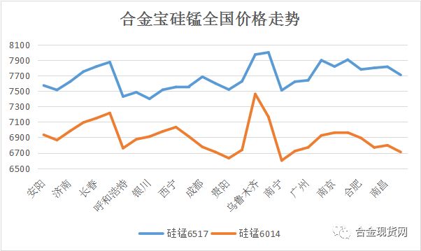 当前市场6517#呈稳中向好趋势,硅锰现货紧俏,厂家库存有限且多有订单。再加上合金厂家忙于交付钢厂订单,基本无剩余生产力,更加剧了硅锰现货的紧缺程度。上游锰矿方面也对硅锰现货以有力支撑。在这硅锰现货向好之际,北方某大型钢厂的第一轮询盘着实让市场吃了一惊。7400元/吨的询盘价与当前市场6517#7300--7400的出厂价一样,令市场参与者不能接受。但总得来看,市场对于6月钢招仍旧盼涨心强烈。之前限停产企业仍未恢复,再加上内蒙、宁夏等主产区正面临全面的环保“回头看”的检查工作,势必对硅锰现货供应产生一定影响。有业内人士认为,鉴于目前市场现货情况,第二轮询盘价上涨基本在情理之中,至于最终定价业内人士依旧给予厚望。今日硅锰现货价格如下图:
