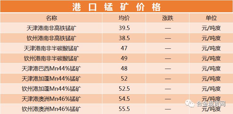 上游锰矿方面:合金厂家与锰矿商博弈激烈。一方面,到港的高价外矿使得锰矿商涨价意愿强烈;另一方面,停产厂家复产情况不如预期,导致合金厂到港取货量虽有所增加,但不足以支撑高价位矿价。面对来势汹汹的高价外矿,合金厂采取按单生产、按单补矿的措施,一次补矿量在1个礼拜左右。总体来看,锰矿成本严重倒挂的情况不会一直持续下去,后期锰矿或迎来小幅上涨。今日港口锰矿价格如下图: