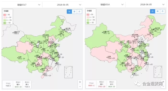 6月5日合金宝指数显示,硅锰6517#价格相比昨日变化不大,其中,河南、河北、山东、江苏等地现金含税包到价格集中在7525-7789元/吨之间。由于当前利好占据主导,工厂低价走货意愿较弱,因此现市场观望情绪升温,且看涨情绪较浓。