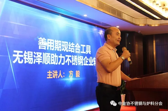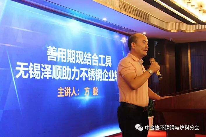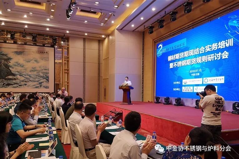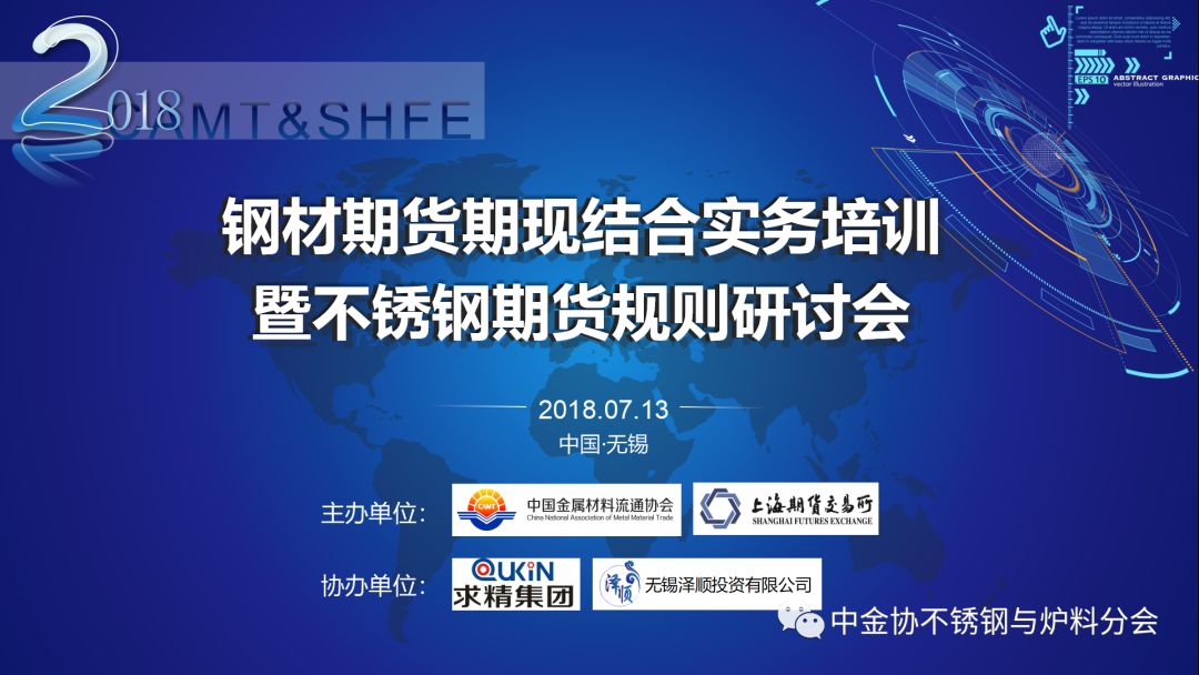 7月13日,由中国金属材料流通协会、上海期货交易所主办,江苏求精集团、无锡泽顺投资有限公司协办的“钢材期货期现结合实务培训暨不锈钢期货规则研讨会”,在无锡香梅国际大酒店顺利召开。来自全国各地的不锈钢企业高层领导220多人出席了大会,与会嘉宾和企业家紧紧围绕我国不锈钢期货主要规则与钢材期现结合等热点问题进行了深入、务实和卓有成效的探讨。