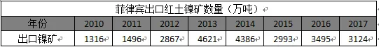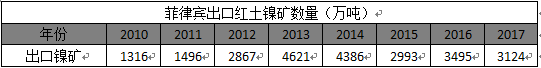 2014-2016年这三年的印尼“禁矿”期,菲律宾也并未停止开矿的脚步,尤其在2013-14年,很快取代印尼成为东南亚第一红土镍矿出口国,年出口量超过4000万吨。但是从最近三年的出口量看,有明显下降的趋势,主要原因是矿产品位下降以及菲律宾政府对于环保问题日趋严苛。
