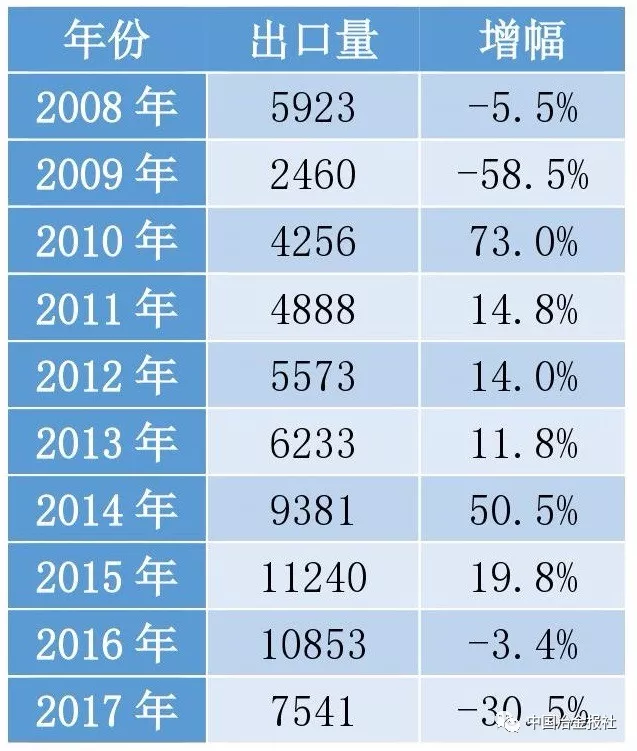 近十年钢材出口情况