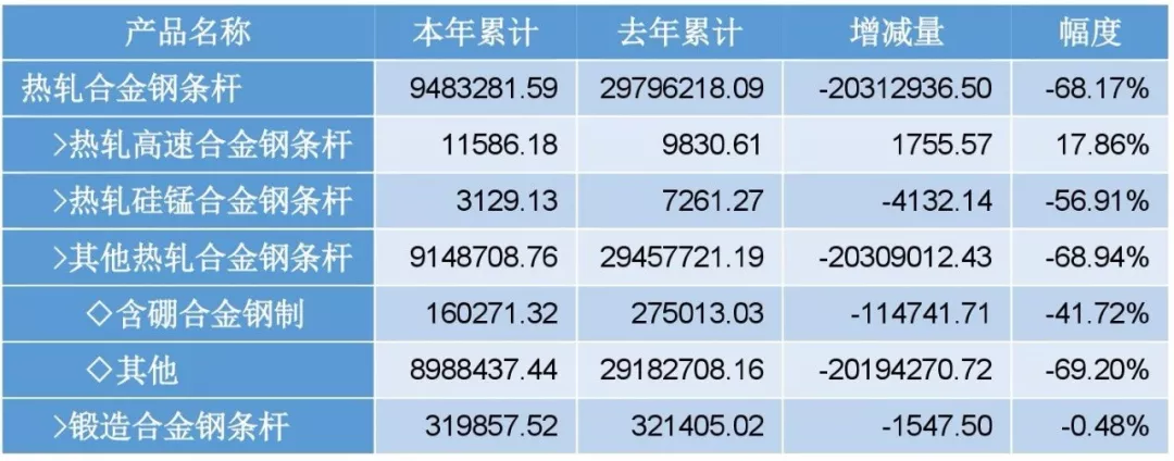从进出口税则的规定来看,热轧合金钢条杆项下具体包括哪些钢材品种,定义不是很明确。而从实际的出口情况来看,具体出口了哪些热轧合金钢条杆,也较难进行具体分析。