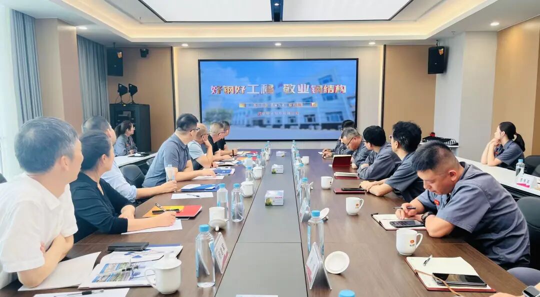 参观结束后,双方于机械设备办公楼六楼第五会议室进行商务座谈。会上,共同观看了敬业集团、信德公司、钢构公司等各公司宣传片,对各公司业务范围与核心竞争力有了更全面了解。随后,围绕增材制造、钢结构、钢材深加工、汽车改装、制管装备等方面,双方展开深入交流,分享先进经验与创新做法,探讨技术合作的可能性,力求在交流中拓展合作思路,实现优势互补。周红民董事长对敬业集团的发展成果给予高度评价,称赞其为学习型、实干型、责任型、创新型、精益型、科技型、感恩型企业。