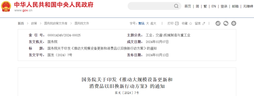 2024年《政府工作报告》提出,推动各类生产设备、服务设备更新和技术改造,鼓励和推动消费品以旧换新。在十四届全国人大二次会议经济主题记者会上,相关部门负责人提出,设备更新初步估算是一个年规模5万亿元以上的巨大市场,汽车、家电更新换代创造万亿规模的市场空间。近日,国务院印发《推动大规模设备更新和消费品以旧换新行动方案》。企业将获得哪些机会?咱老百姓将获得哪些实惠?一起来看——