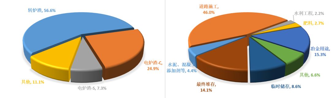 钢渣包括转炉渣、电炉渣以及铁水预处理渣、精炼渣和铸余渣等。转炉渣产量大约为130千克/吨粗钢,电炉渣产量受原料条件及产品要求波动较大,大约为100千克/吨粗钢。